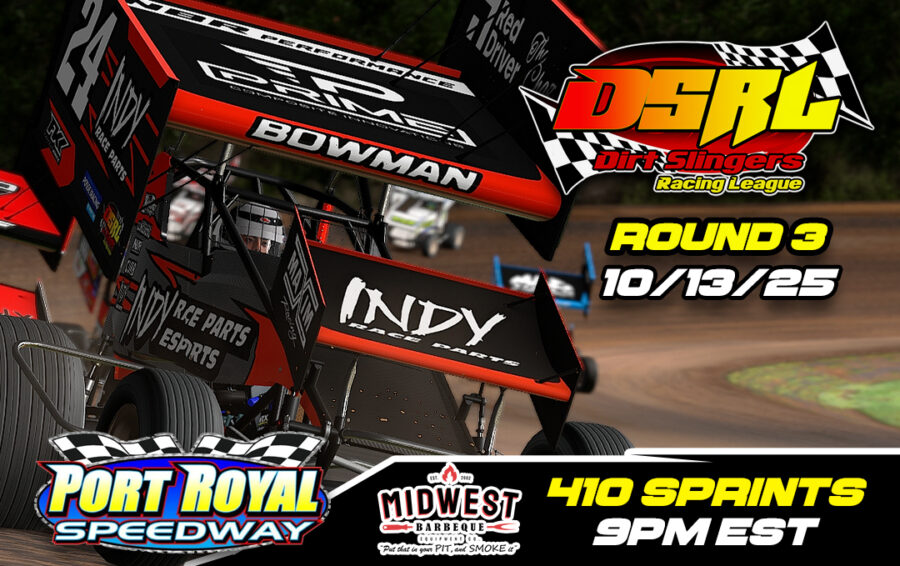 Monday Oct 13th, the series heads to Port Royal Speedway in the 410 Sprints for Rd #3. Race Server goes up at 9pm EST.